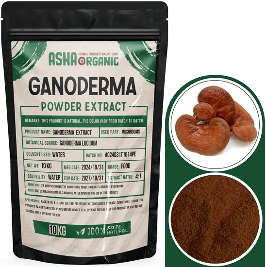 عصاره گانودرما پودری توسط بازرگانی آشاارگانیک عرضه می گردد. لازم به ذکر است که مجموعه آشا علاوه بر عصاره ی خشک گانودرما، عصاره هیدروالکلی مایع (حلال در آب)، عصاره روغنی ( حلال در چربی) و عصاره هیدروگلایکولی این گیاه را نیز برای مشتریان خود فراهم می آورد.